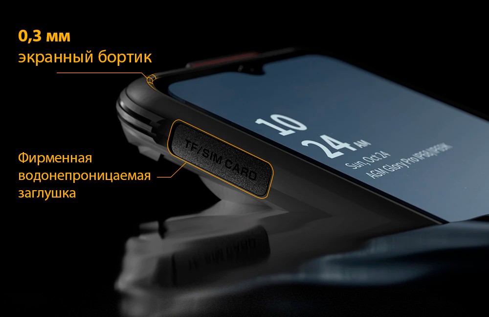 Экран утоплен внутрь для уменьшения воздействия путем давления, прочный прорезиненный корпус с примесью стекловолокна, фирменная заглушка — инженеры AGM GLORY сделали всё, чтобы ваш новый смартфон был в безопасности в любой жизненной ситуации.