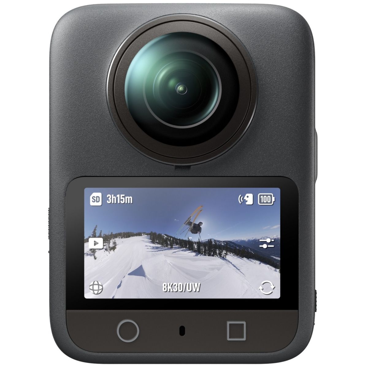 Специально разработанный для панорамной съёмки новый квадратный HDR-сенсор сохраняет тот же угол обзора 360°, что и традиционный 1-дюймовый сенсор, при этом повышая эффективность его использования на 25%. Это обеспечивает выдающееся качество изображения и более низкое энергопотребление при сверхкомпактных и лёгких габаритах камеры.