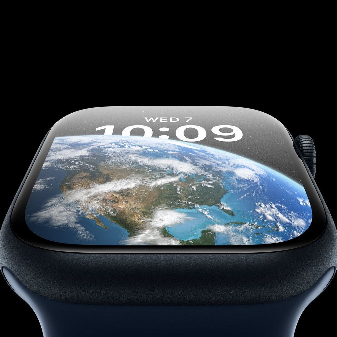 Apple Watch Series 8 оснащены большим ярким дисплеем Always‑On. Узкие рамки выталкивают экран прямо к краю, что обеспечивает элегантную интеграцию с формой корпуса.