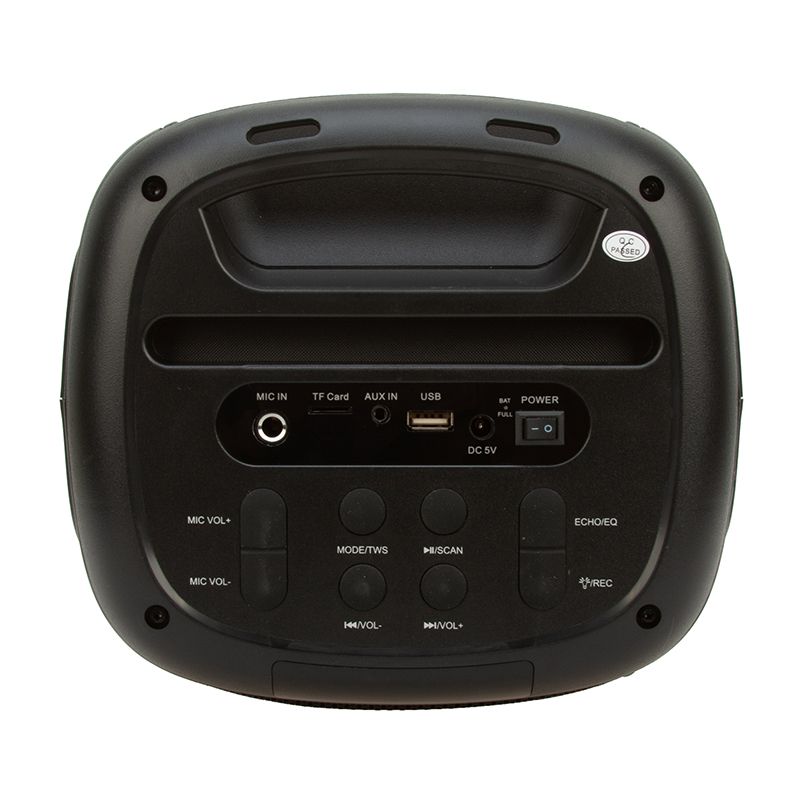 ELTRONIC 20-46 CRAZY BOX 150 обладает одним динамиком диаметром 5,25 дюймов, а также твитером, расположенным в верхней части колонки и отвечающим за воспроизведение высоких частот. Чтобы их лучше было слышно, нужно поставить переносную колонку с флешкой на стол или на высокую полочку. Если же вы мечтаете об объемном звучании, то рекомендуем приобрести еще одну колонку ELTRONIC 20-46 CRAZY BOX 150 и через функцию TWS соединить их в стерео пару.