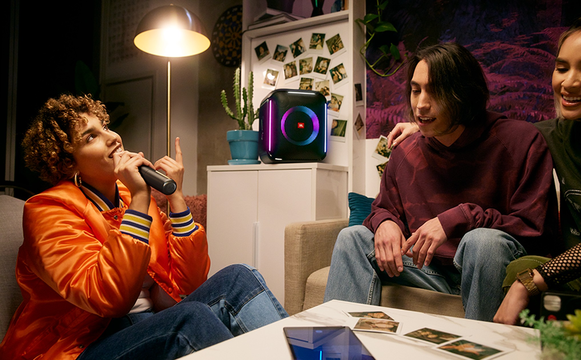 Световые эффекты PartyBox — кольцевые и клубные огни, а также динамичные стробоскопы — синхронизируются с ритмом, создавая захватывающее аудиовизуальное шоу.