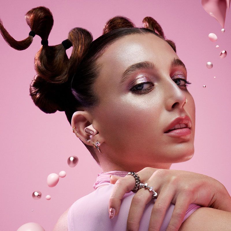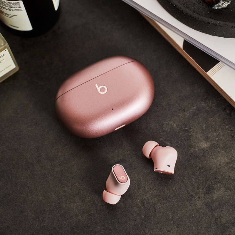 Beats Studio Buds + поддерживает пространственный звук для захватывающей музыки, обеспечивая ощущение объемного звучания, которое вы можете взять с собой куда угодно.