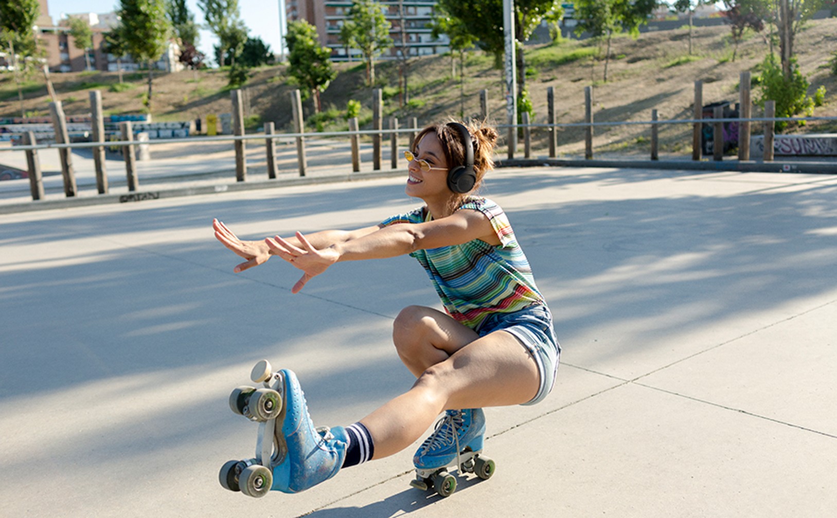 Мягкие амбушюры и легкая регулируемая дужка с мягкой прокладкой обеспечивают комфорт даже при длительном прослушивании. А когда приходит время убрать наушники, они легко складываются в плоскую конструкцию и компактно помещаются в сумку или рюкзак.