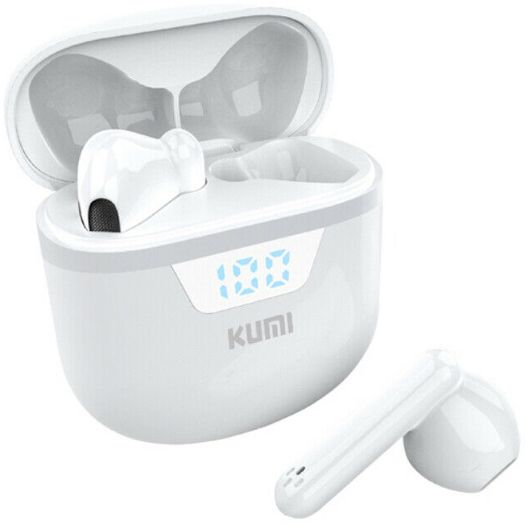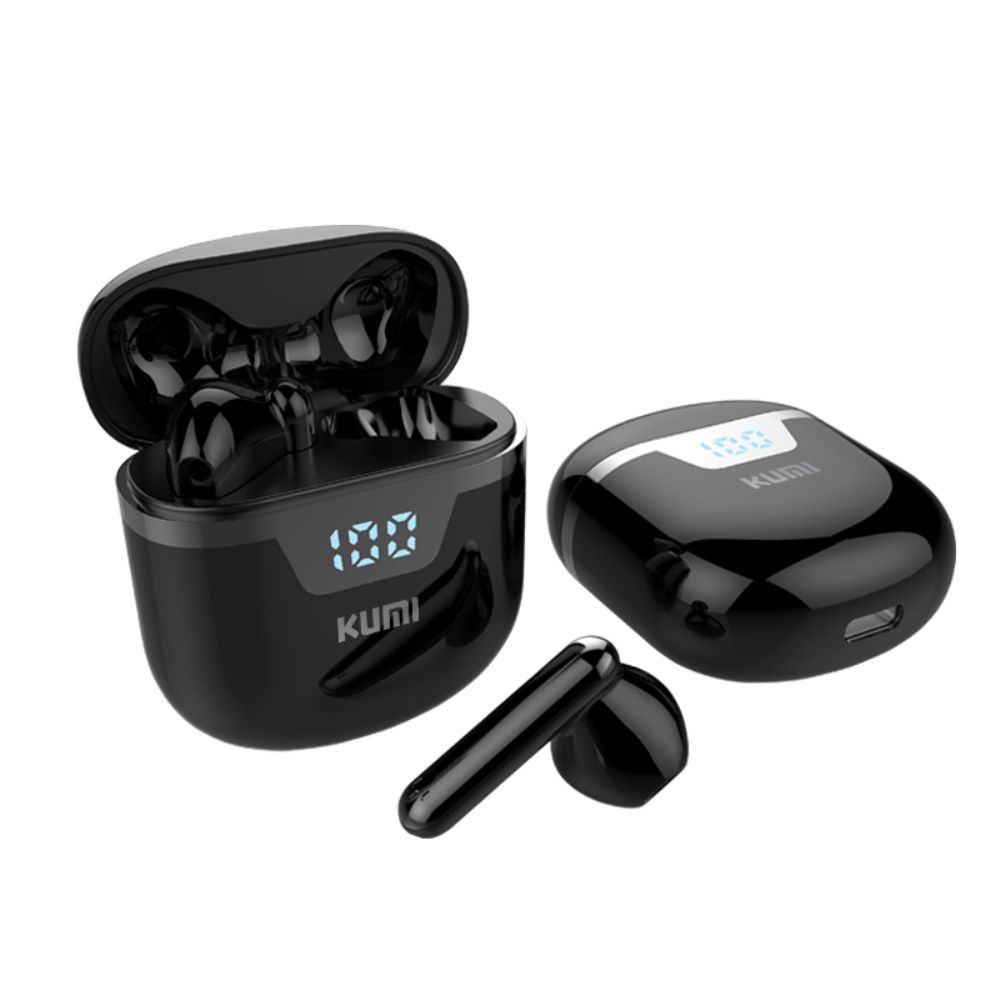 Kumi G03 беспроводная гарнитура с микрофоном, Bluetooth 5.1, батарей одного наушника на 35 мАч для 4,5 часов музыки и звонков и 200 часов в режиме ожидания с зарядным чехлом на 300 мАч и LED-дисплей, отражающий заряд аккумулятора.