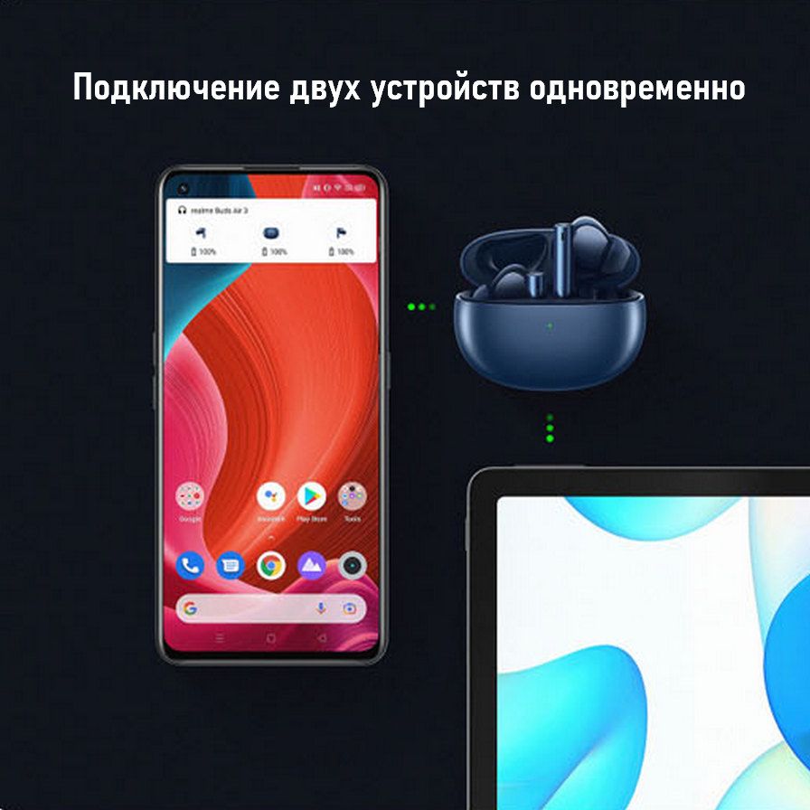 Наушники способны проработать до 30 часов в режиме воспроизведения. При включении шумоподавления автономность realme Buds Air 3 составит до 22 часов.