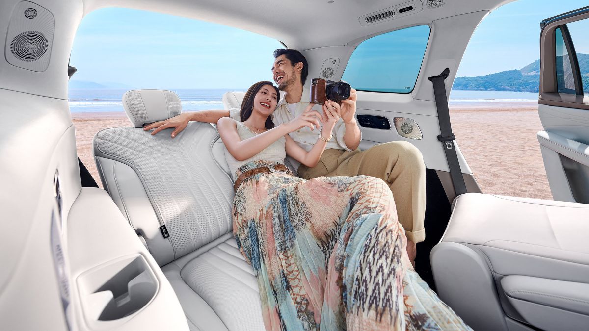 Салон имеет конфигурацию 2+2+2. Все кресла оснащены подогревом, а первые два ряда дополнительно получили вентиляцию и массаж. Центральный экран имеет диагональ 30 дюймов, а для пассажиров второго и третьего рядов предусмотрен потолочный раскладной дисплей 17,3 дюйма. В распоряжении — аудиосистема мощностью 2300 Вт с 27 динамиками и холодильный отсек объёмом 9,1 л между передними сиденьями. Объём багажника — 328 л (при всех рядах) и до 2171 л при сложенных втором и третьем рядах.