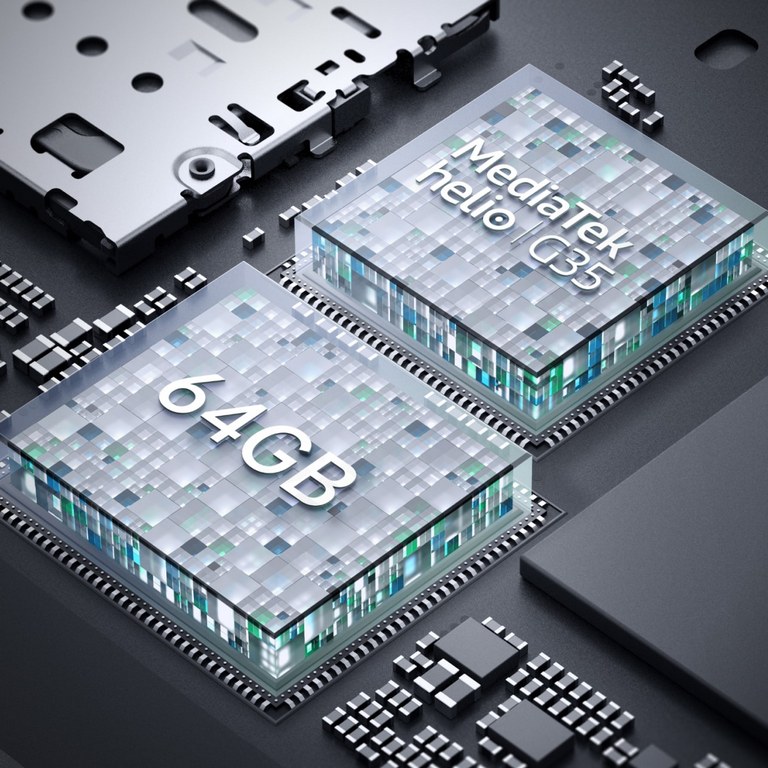 - Процессор: MediaTek Helio G35, 2,3 Ггц, 12 нм, 8 ядер