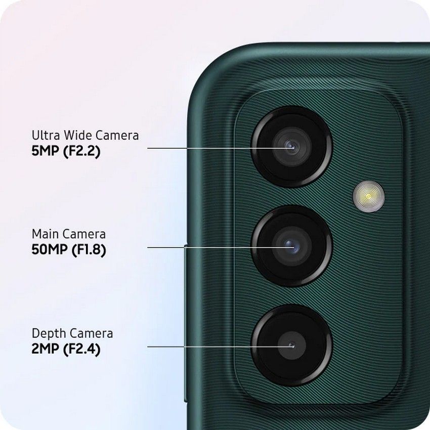 Качественный дизайн Galaxy M13 сочетает в себе мягкие закругленные края и основную рамку, в которой видна минималистичная камера. M13 выпускается в темно-зеленом, светло-голубом и оранжево-медном цветах, поэтому вы можете выбрать тот, который лучше всего подходит к вашему повседневному стилю.