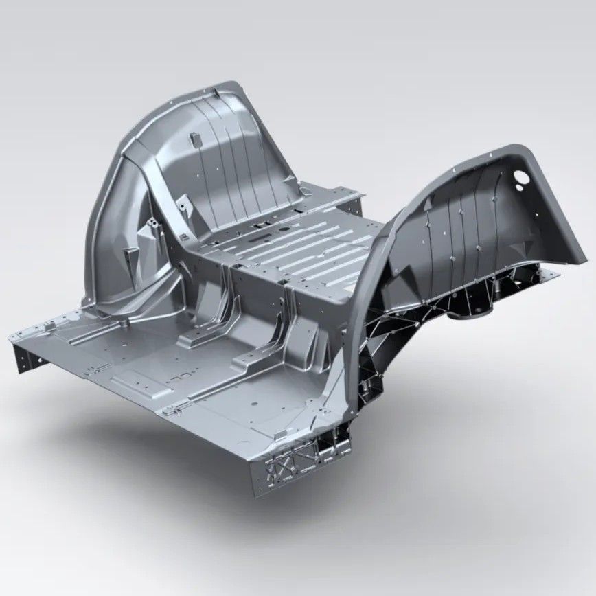 Деформация кузова задней части машины уменьшена на 12%, количество деталей уменьшено на 74, а количество точек сварки уменьшено почти на 800.