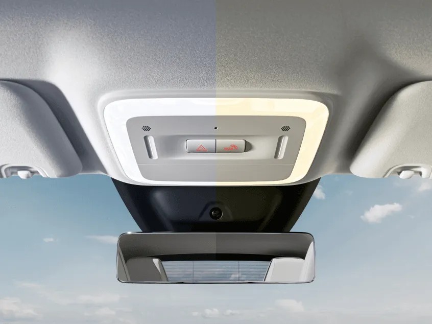 - Безрамное внутреннее зеркало заднего вида с электронным антибликовым покрытием