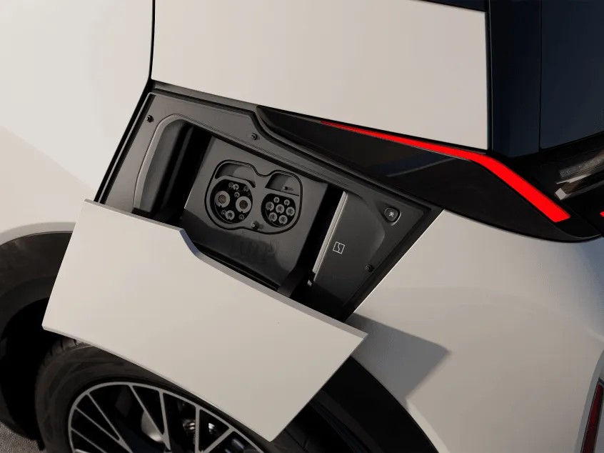 Встроенный порт быстрой и медленной зарядки хитроумно спрятан в заднем крыле, чтобы упростить очертания кузова.