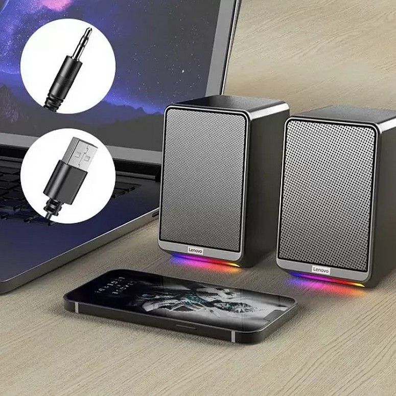Lenovo TS38 – аудиосистема из двух колонок мощностью 5 Вт порадует вас качественным и насыщенным звучанием. Лаконичный черный дизайн с декоративной RGB-подсветкой украсят любой рабочий стол. Колонки обеспечивают громкий звук, оснащены разъемом mini-jack 3.5 мм и USB-A для подключения внешних источников воспроизведения - компьютера, смартфона, плеера.