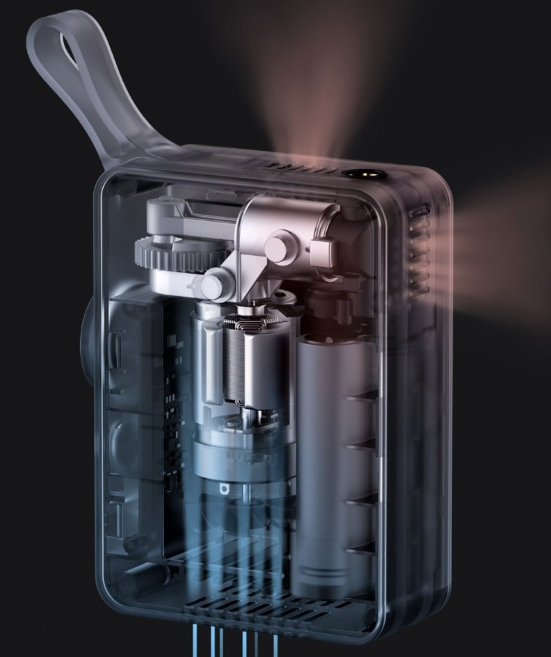 Компрессор использует большой шланг диаметром 19 мм и мощный магнитный двигатель для быстрого надувания. Полная зарядка позволяет зарядить 2,8 автомобильные шины. Компрессор оснащен встроенным аккумулятором большой емкости 2500 мАч.