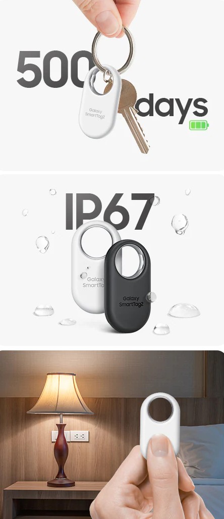 Обновленный Galaxy SmartTag2 удобен для маркировки и переноски, прочен благодаря классу защиты от пыли и воды IP67, обеспечивает удаленный доступ к вашим устройствам IoT и работает до 500 дней или даже на 40% дольше в режиме энергосбережения.