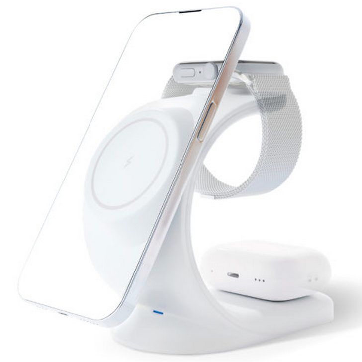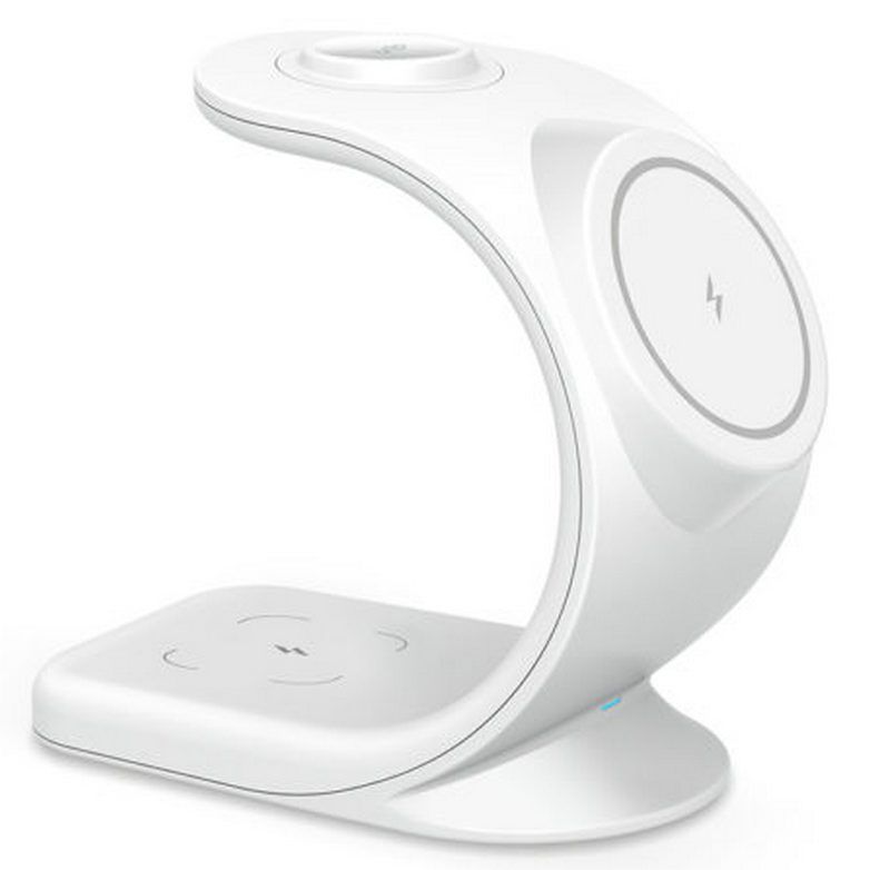 Удобное и стильное зарядное устройство обладает множеством функций и возможностей и представляет собой универсальное решение для ежедневной зарядки Ваших устройств. С ним Вы сможете заряжать три гаджета одновременно: телефон, часы и наушники – все в одном месте, без лишних хлопот и проводов. Благодаря поддержке технологии MagSafe, Вы можете быть уверены в надежности и скорости зарядки. Изготовлено из качественных материалов – огнеупорного поликарбоната и ABS пластика, которые обеспечивают безопасность и долговечность.
