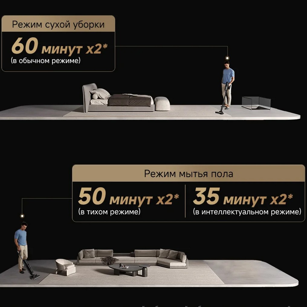 Универсальный набор режимов позволяет легко переключаться между сухой уборкой и мытьем пола. Это мощное устройство «6 в 1» помогает применять индивидуальный подход к очистке любых поверхностей — от ковров до твердых напольных покрытий.