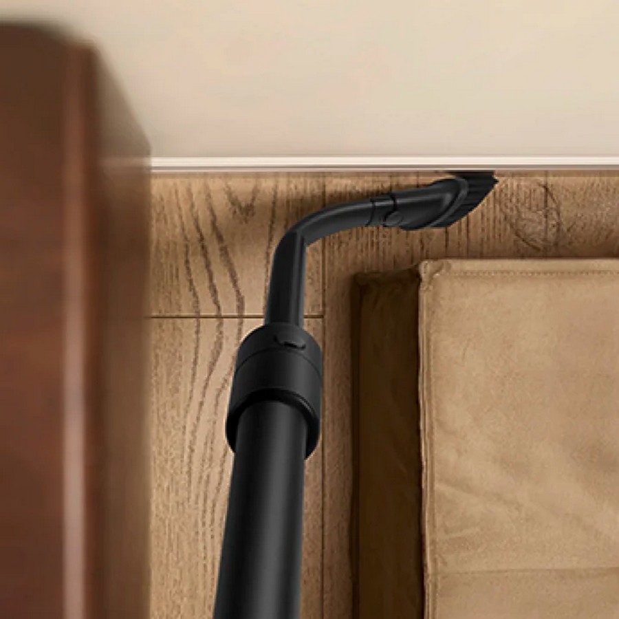 Герметичная система обеспечивает быструю сушку щетки благодаря высокоскоростному потоку воздуха, при этом уровень шума не превышает 63 дБА для создания тихой и комфортной атмосферы во время уборки.