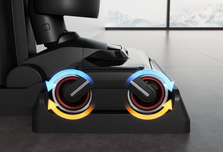 Двойные роликовые щетки оснащены двумя двигателями для тяги, которые можно переключать вперед и назад по желанию.