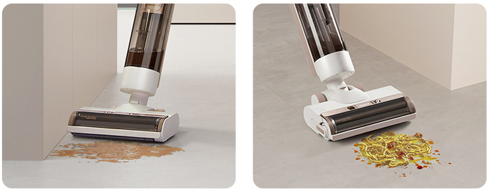 Конструкция роликовой щетки "от края до края" позволяет захватывать мусор и грязь со всех направлений. Расстояние от края до щетки составляет всего 6 мм.