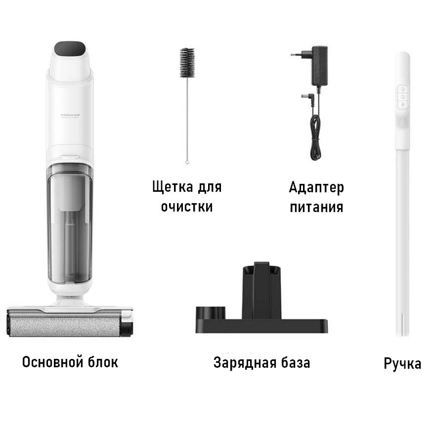 - Комплектация: Основной блок, ручка, зарядная база, адаптер питания, щетка для чистки