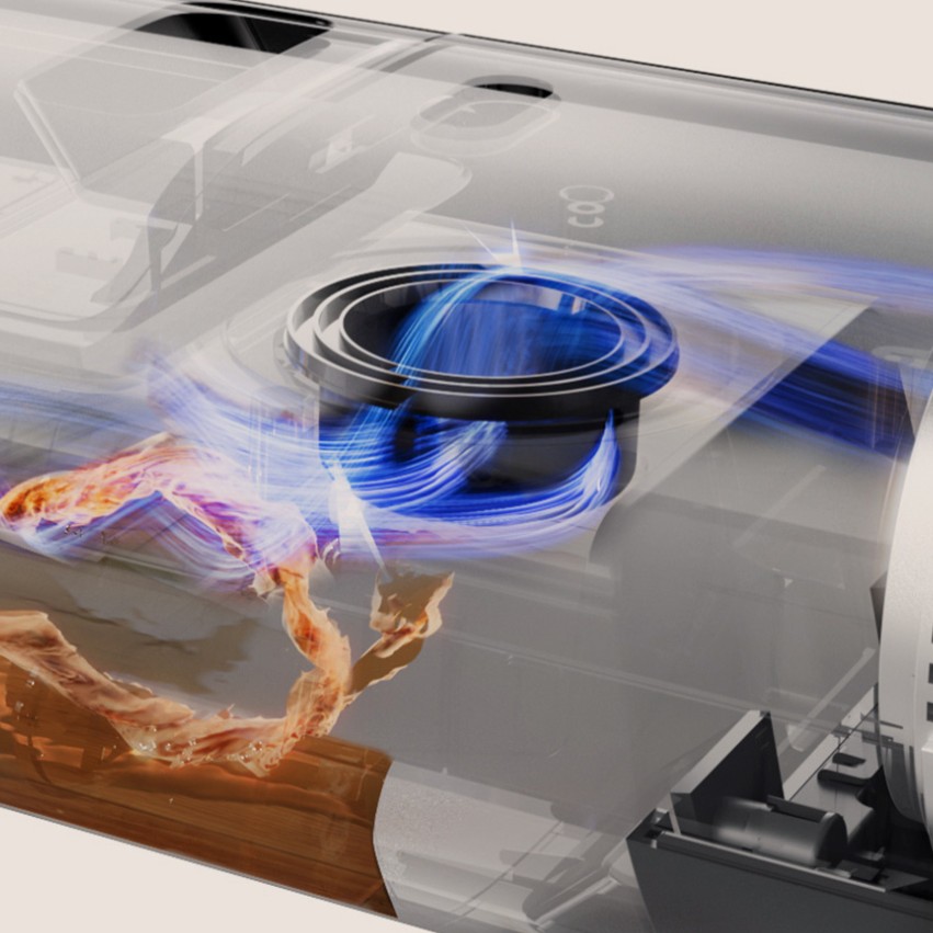 Он поддерживает технологию горизонтального лежания Superplana 2.0, которая позволяет эффективно отделять водяной пар и предотвращать попадание грязной воды в двигатель. Сила всасывания остается высокой и не уменьшается в горизонтальном положении.