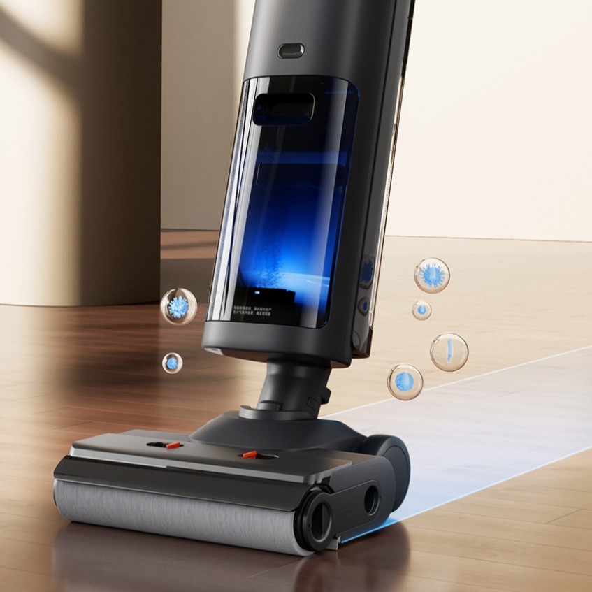 Автоматическое обеззараживание, стерилизация и удаление вирусов выполняется за один этап. Стерилизованная вода используется для мытья пола с помощью роликовой щетки.