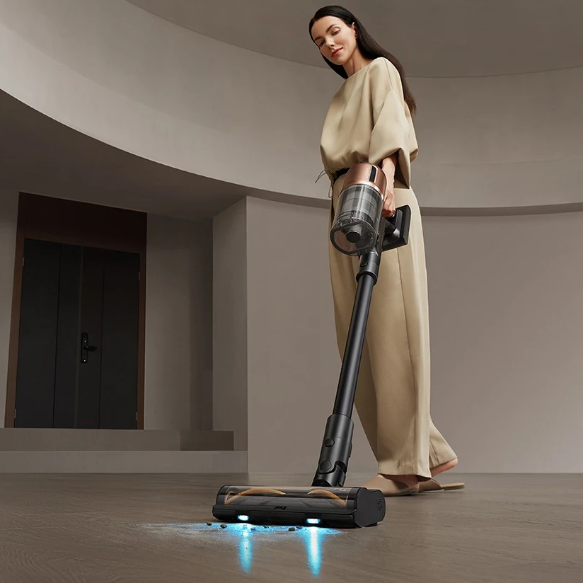 Мягкая роликовая щетка также оснащена подсветкой, которая помогает обнаружить скрытую пыль и эффективно очистить труднодоступные места. Теперь уборку можно выполнять на более близком от стены расстоянии (7 мм). Пылесос без проблем удаляет мусор по обеим сторонам, в том числе вдоль плинтусов.