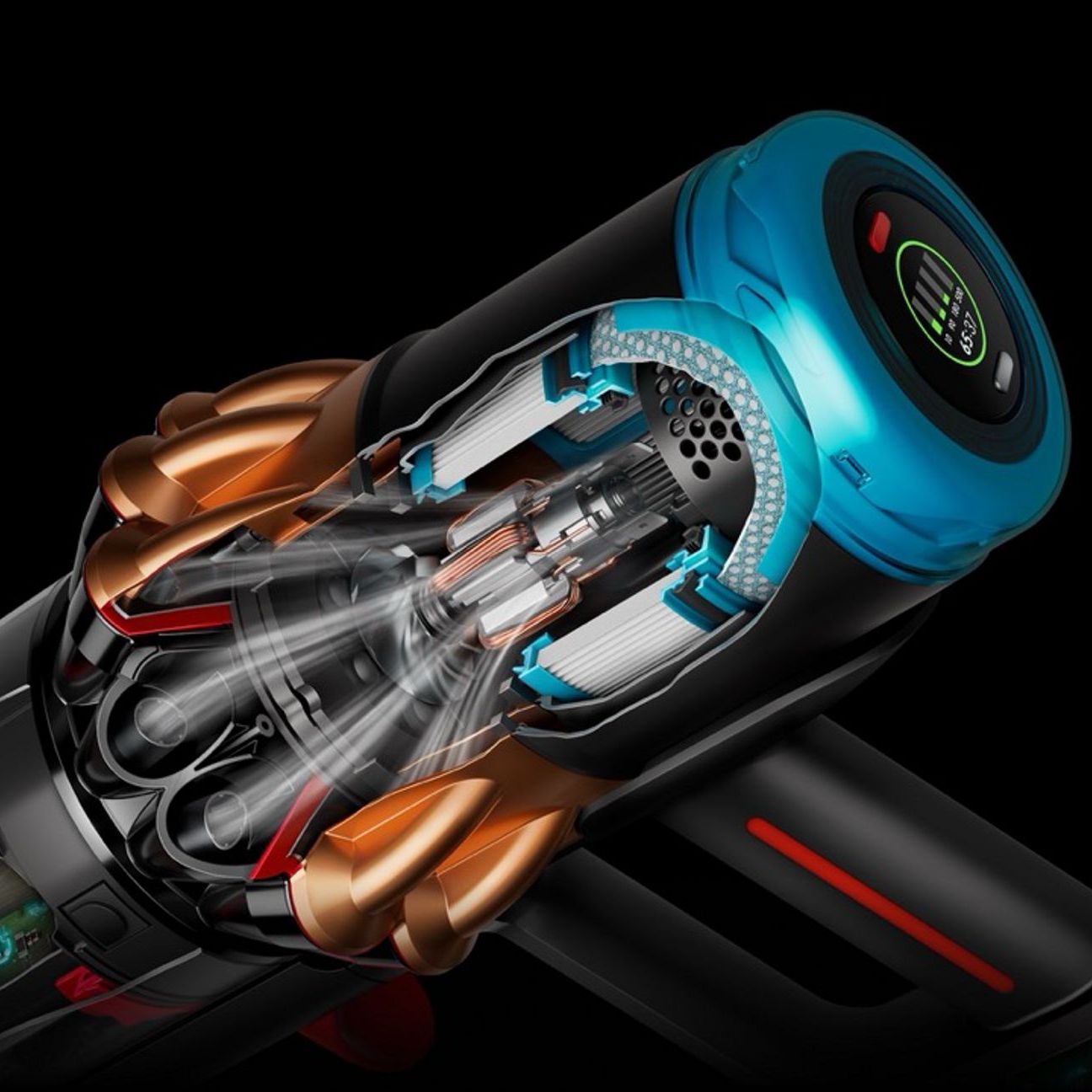 Работает на новом цифровом моторе Dyson Hyperdymium мощностью 900 Вт.
