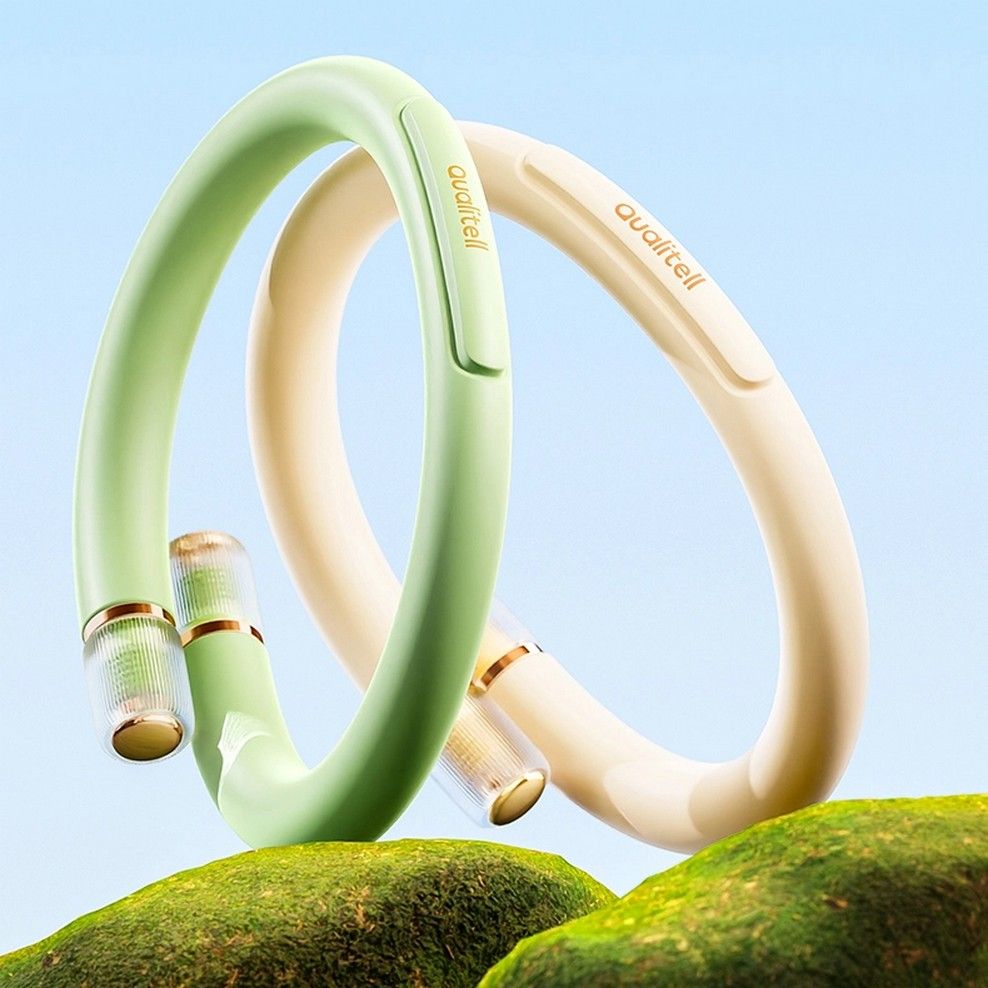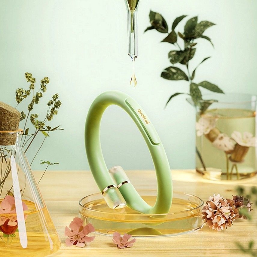 Браслет от комаров Qualitell Q1 выполнен из силикона и заправляется смесью масел, которые отпугивают разные виды комаров (в комплекте). Эффект памяти сохраняет форму браслета при расстегивании.