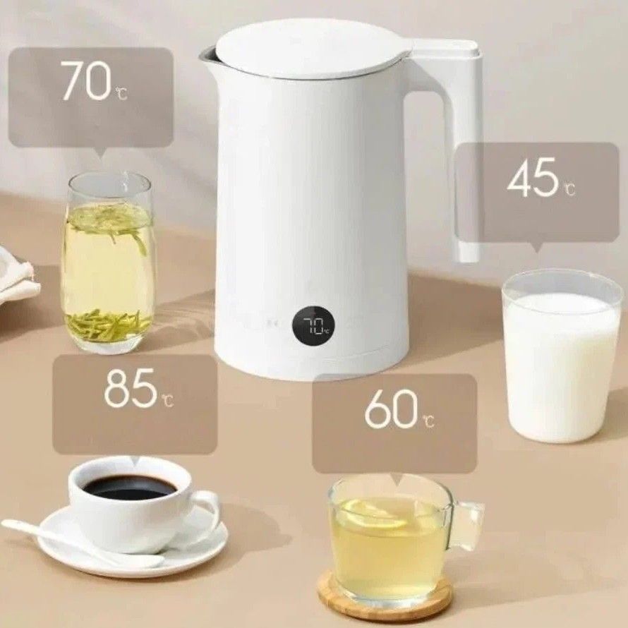 Новый электрический чайник Xiaomi в элегантном дизайне и с продуманной функциональностью. Выбирайте оптимальную температуру для приготовления любимого напитка из 4 предложенных с помощью интуитивной панели управления. Удобный электронный дисплей показывает текущую температуру воды в реальном времени. Одно касание – и вы наслаждаетесь любимым горячим кофе или ароматным чаем, заваренным при правильной температуре.