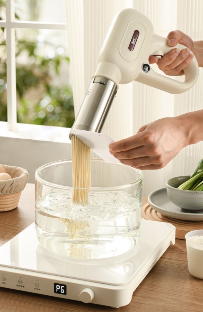 - Комплектация: Электрическая машина для приготовления пасты, кабель для зарядки, насадка для формования колбасок 2 шт., насадка для формования лапши 5 шт., мерный стакан, скребок, руководство пользователя