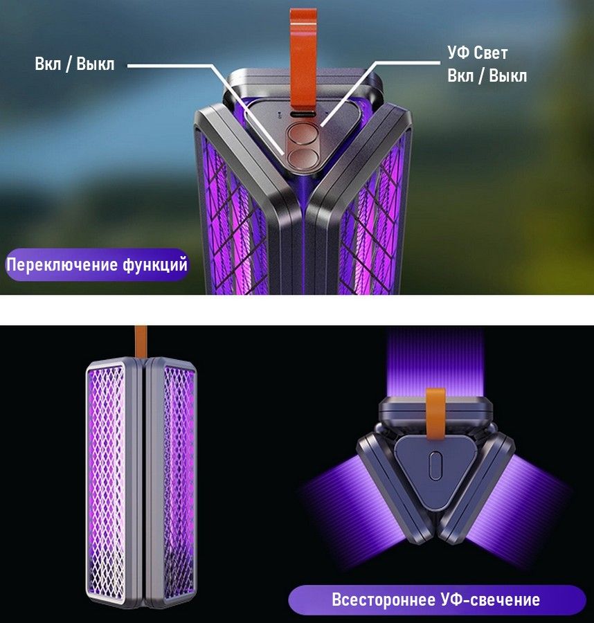 Он излучает фиолетовый свет длиной волны 360-400 нм для ловли насекомых.