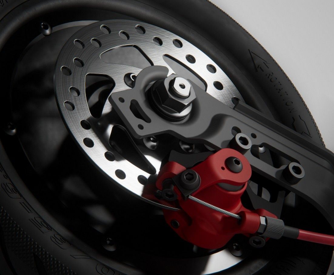 Оба колеса оснащены высокоэффективными дисковыми тормозами, которые быстро охлаждаются и обеспечивают надежную остановку. Такая система позволяет быстрее тормозить и сохранять контроль даже на скользких или неровных дорогах, давая вам полное управление скоростью в любых условиях.