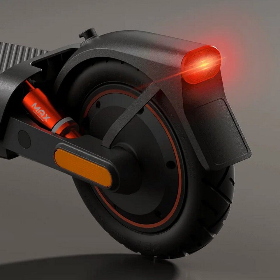 Самокат оснащён механическим барабанным тормозом на переднем колесе и электрическим тормозом E-ABS на заднем. Вместе они значительно сокращают тормозной путь, улучшая стабильность и безопасность на дороге.