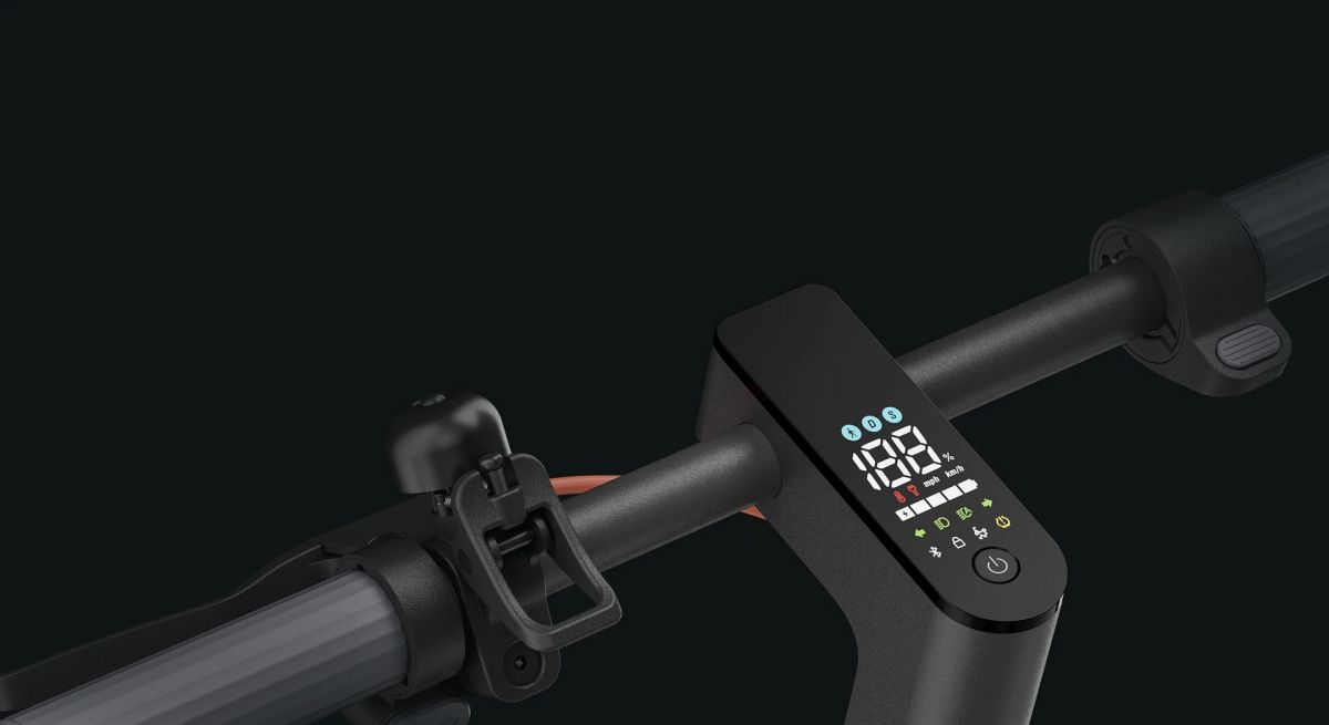 Удобный интерфейс позволяет легко проверять скорость, оставшийся заряд, сигналы поворота и статус устройства во время поездки.