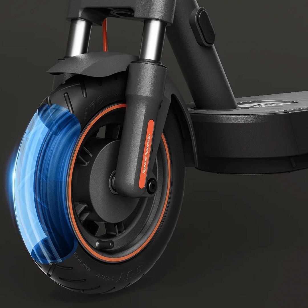 Большие бескамерные шины диаметром 10 дюймов и шириной 60 мм тщательно спроектированы для поглощения ударов и улучшения сцепления в поворотах, что повышает стабильность и безопасность во время езды.