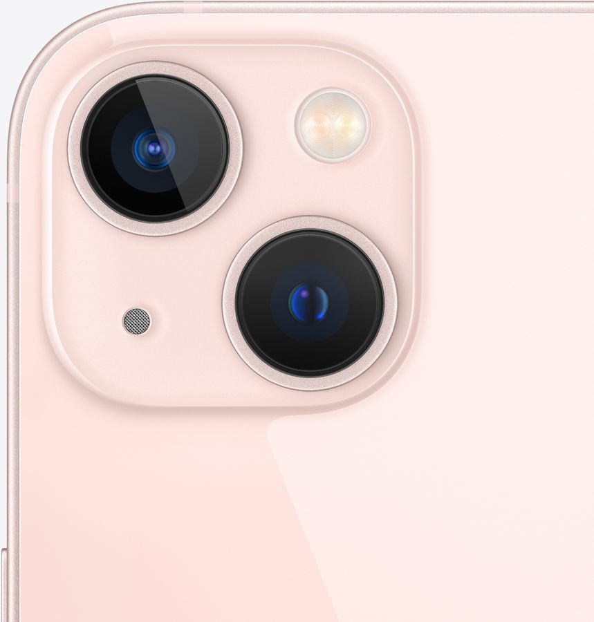 Смартфон оснащён новой системой камер, объективы которых расположены в блоке по диагонали. Камеры имеют более крупный сенсор, захватывающий больше света (что приводит к снижению уровня цифрового шума), поддерживают улучшенную ночную съемку и оптическую стабилизацию. Камера стала лучше по сравнению с iPhone 12, основной модуль на 12 Мп улавливает больше света, а дополнительный широкоугольный модуль на те же 12 Мп обзавёлся автофокусом и лучше приспособлен к съёмке в условиях плохого освещения. Широкоугольная: диафрагма ƒ/1.6. Сверхширокоугольная: диафрагма ƒ/2.4 и угол обзора 120°.