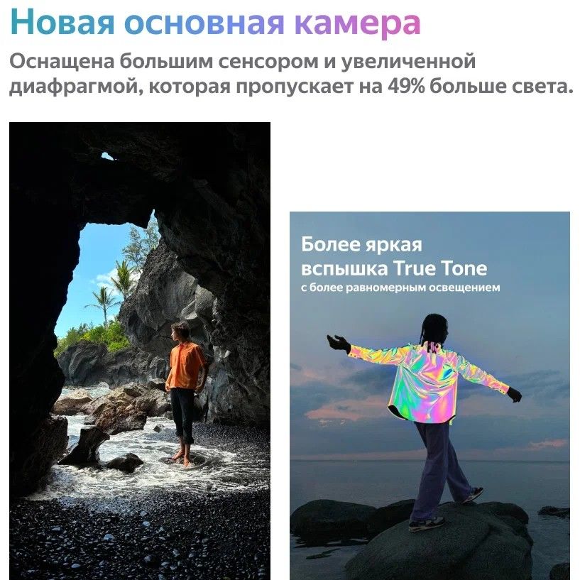 Новая основная камера отличается увеличенным сенсором и увеличенной апертурой, пропускающей на 49% больше света. Коснитесь затвора, и новый фотонный движок улучшит возможности камеры. Он объединяет лучшие пиксели из нескольких экспозиций на более ранней стадии, чем когда-либо прежде. Это сохраняет гораздо больше данных изображения, обеспечивая более яркие, реалистичные цвета и красивые детализированные текстуры даже при слабом освещении.