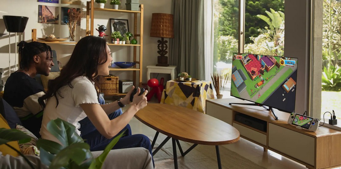 На консоли ROG Ally можно играть вместе, с одного дивана: достаточно подключить ее к телевизору и взять пару геймпадов.