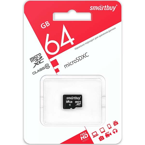 Карта памяти MicroSD 64Gb Smartbuy