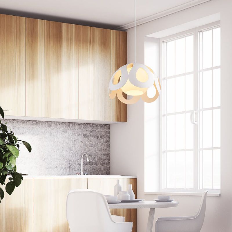 Белый цвет универсален, а потому светильник Opple с лёгкостью уживется с кухней любого стиля и цветовой палитры. Его ажурная рама придает ему больше объема, а эстетичный внешний вид украшает все пространство вокруг.