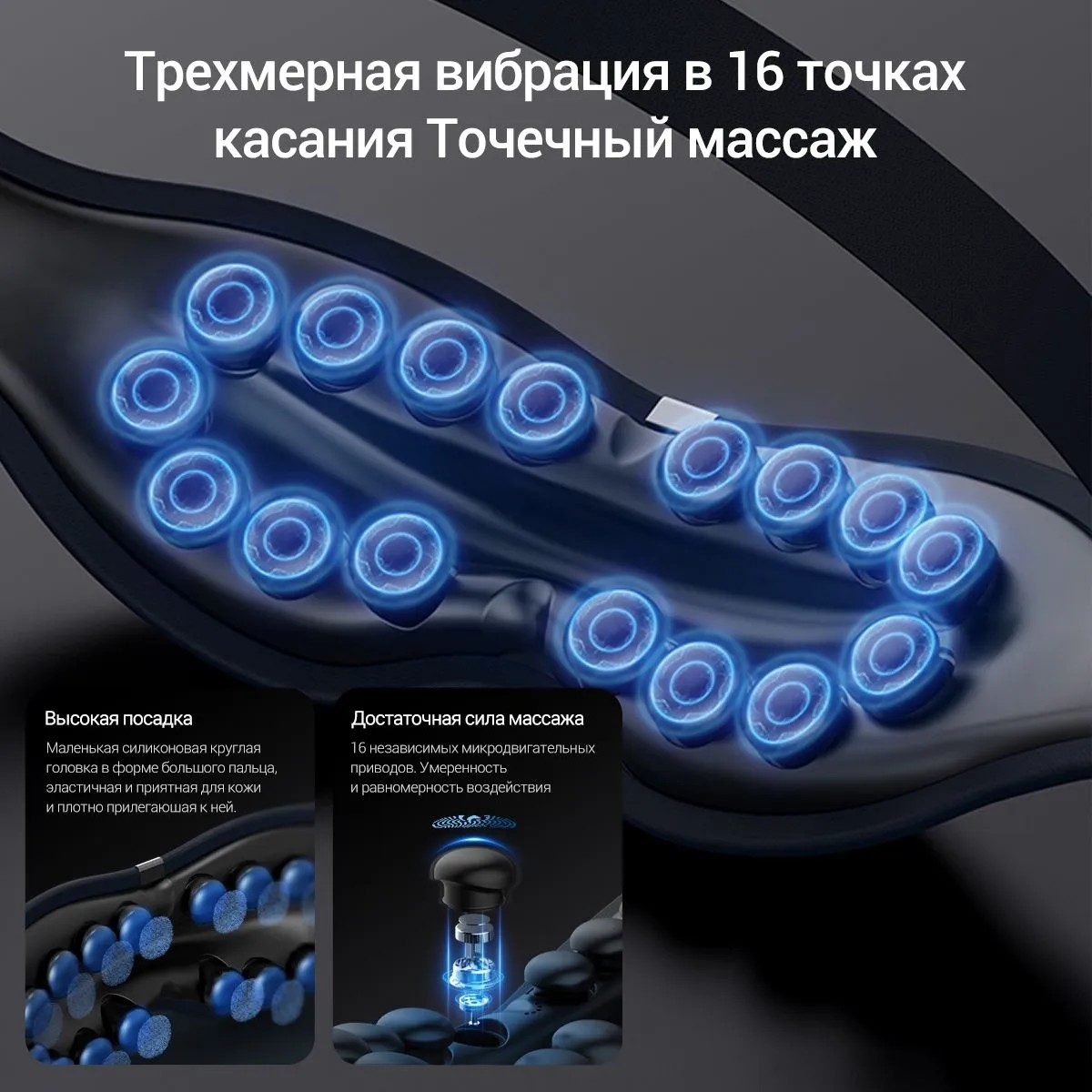 В основе Deerma DEM-M301E лежит уникальная система 3D-вибрации с 16 силиконовыми массажными головками, расположенными в стратегически важных зонах вокруг глаз. Каждая точка работает в гармонии с остальными, обеспечивая целенаправленное воздействие на биологически активные участки. Такой подход эффективно снимает напряжение, уменьшает отечность, стимулирует кровообращение и дарит ощущение глубокого расслабления после долгого дня.