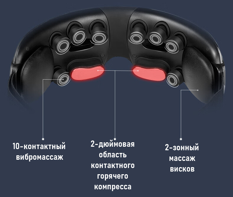 Все 10 больших массажных головок используют независимые микровибрационные двигатели и массируют круговую мышцу глаза с помощью высокочастотных вибрационных массажных головок, обеспечивая успокаивающее и расслабляющее воздействие на глаза.