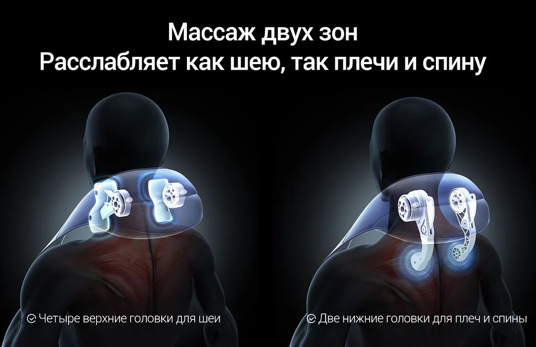 6 массажных головок расположены в верхней и нижней частях, охватывая плечи, шею и спину, обеспечивая мошный и комфортный массаж!