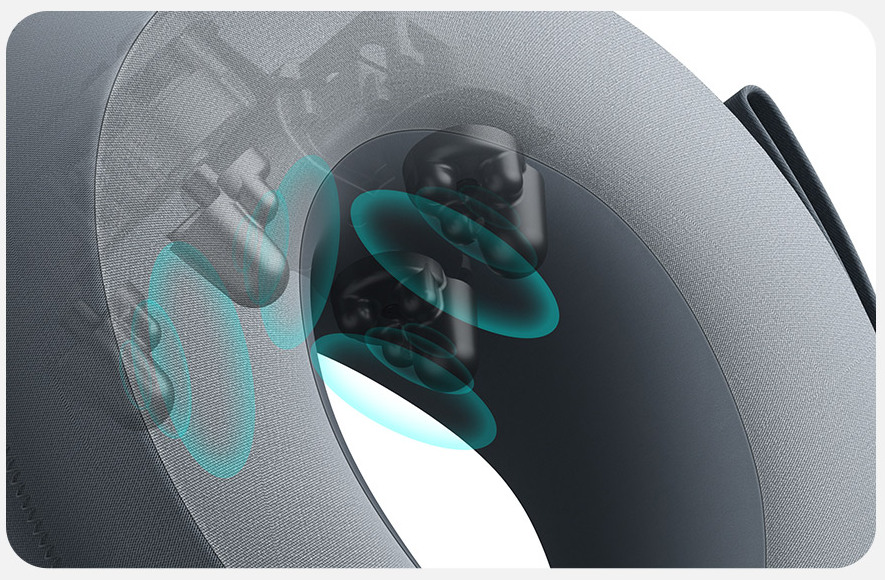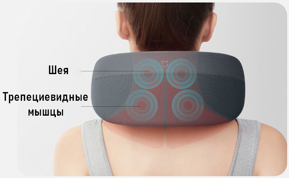 4 массажные головки охватывают не только шею, но и плечи, массируя часть верхних трапециевидных мышц, имитируя толчки, повороты и разминания человеческими руками для снятия скованности и боли.