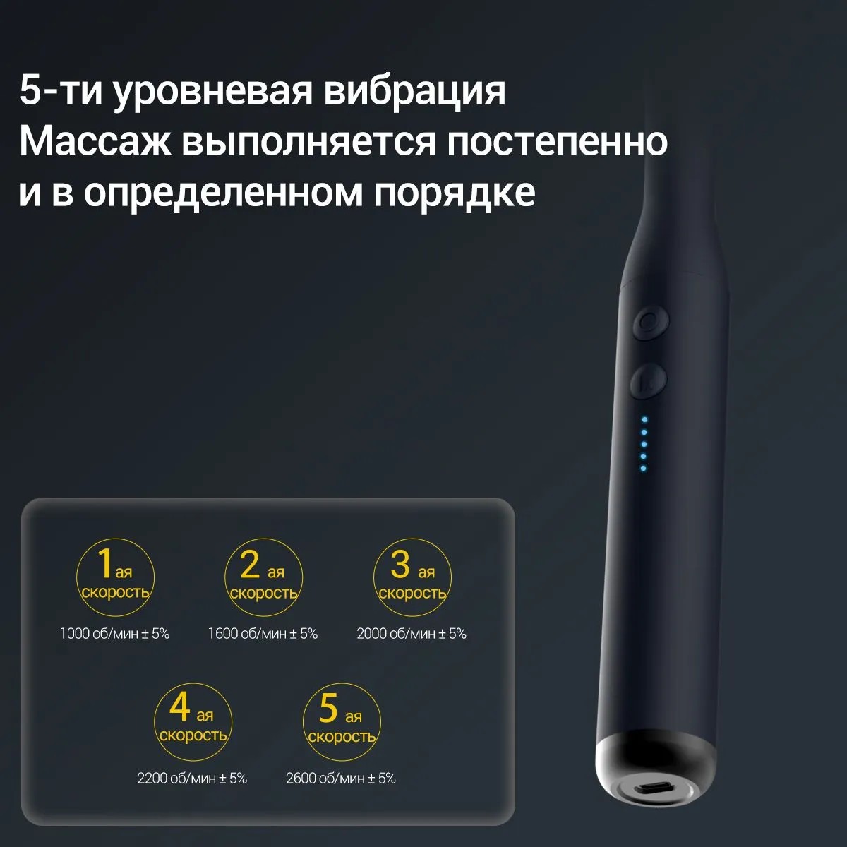Можно свободно переключать 5 уровней вибрации, постепенно расслабляя мышцы в определенном порядке.