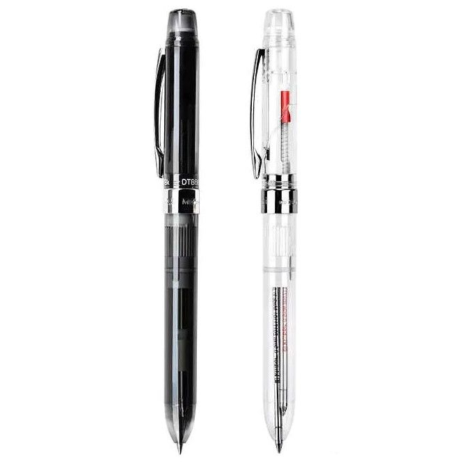 Обычно в такие ручки добавляют стержни с яркими чернилами, но китайский производитель сделал упор на практичность. Ручка оснащена стержнями с черными и красными чернилами, а также автоматическим карандашом. Поэтому она скорее подойдет для студентов, ведь всегда можно сделать выделение важных моментов в конспектах (вы скажете себе спасибо при подготовке к экзаменам). А если в редких ситуациях нужен карандаш, то он всегда под рукой. Модель также оснащена ластиком.