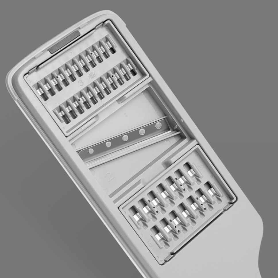 Оснащена тремя видами лезвий, позволяющими выбирать между нарезкой соломкой или ломтиками. Легко справляется с любыми продуктами, экономя время и силы — ваш незаменимый помощник на кухне.
