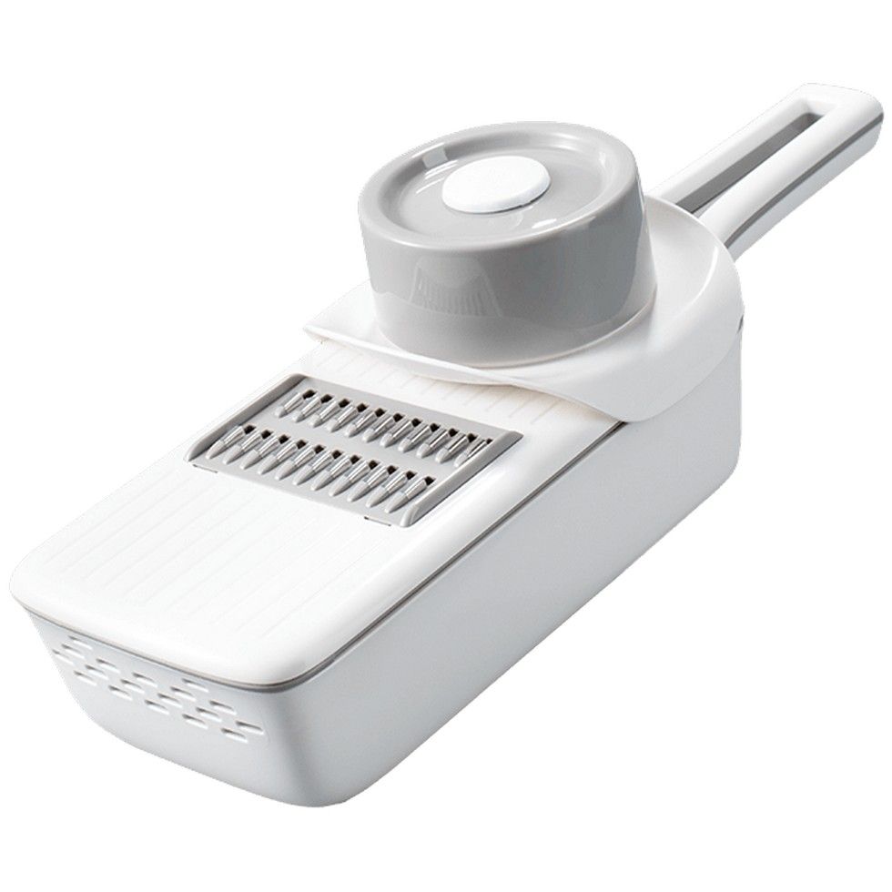 Тёрка оснащена безопасными направляющими, которые обеспечивают плавное движение защитного держателя. Закрытая конструкция направляющих на верхней части устройства предотвращает его выпадение и снижает риск травм.