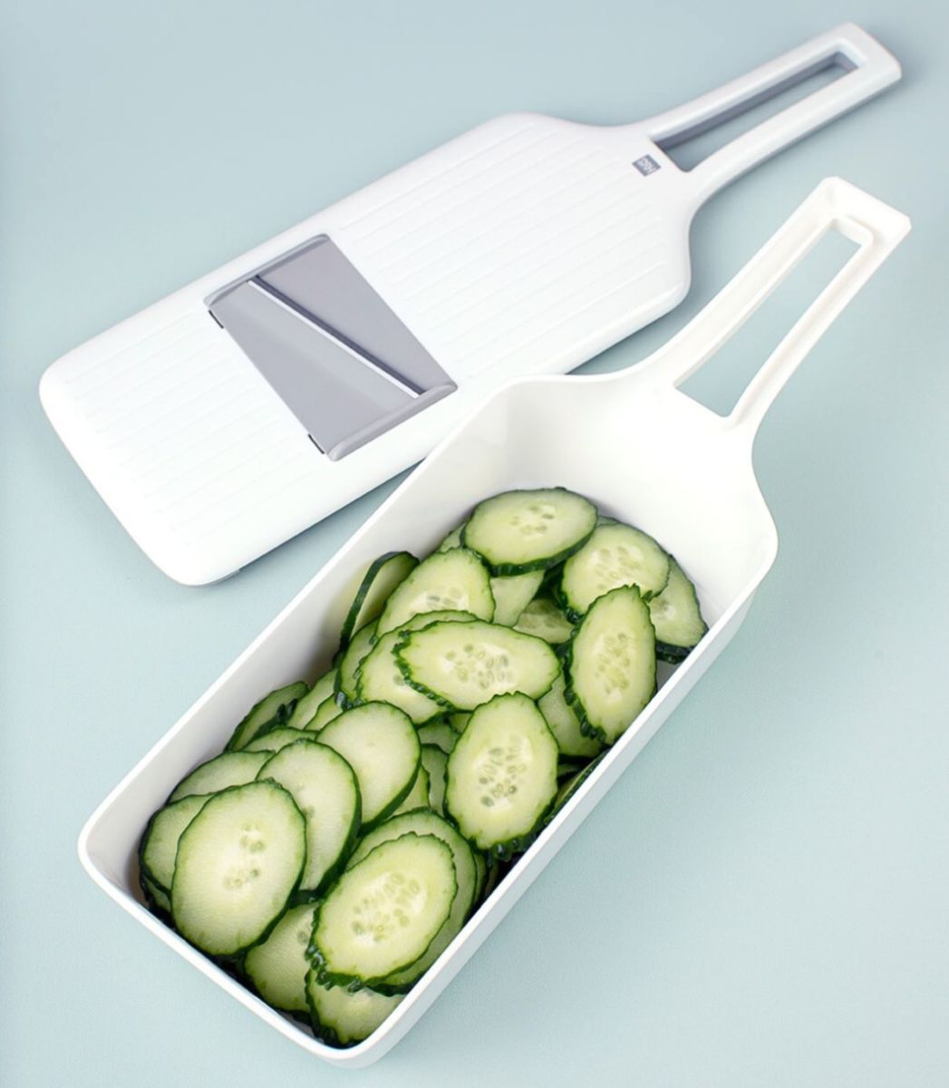 Нарезанные или натёртые ингредиенты автоматически собираются в нижний контейнер, исключая их накопление на рабочей поверхности. Это обеспечивает чистоту и гигиену продуктов. Благодаря большому объёму контейнер может вместить большее количество ингредиентов.